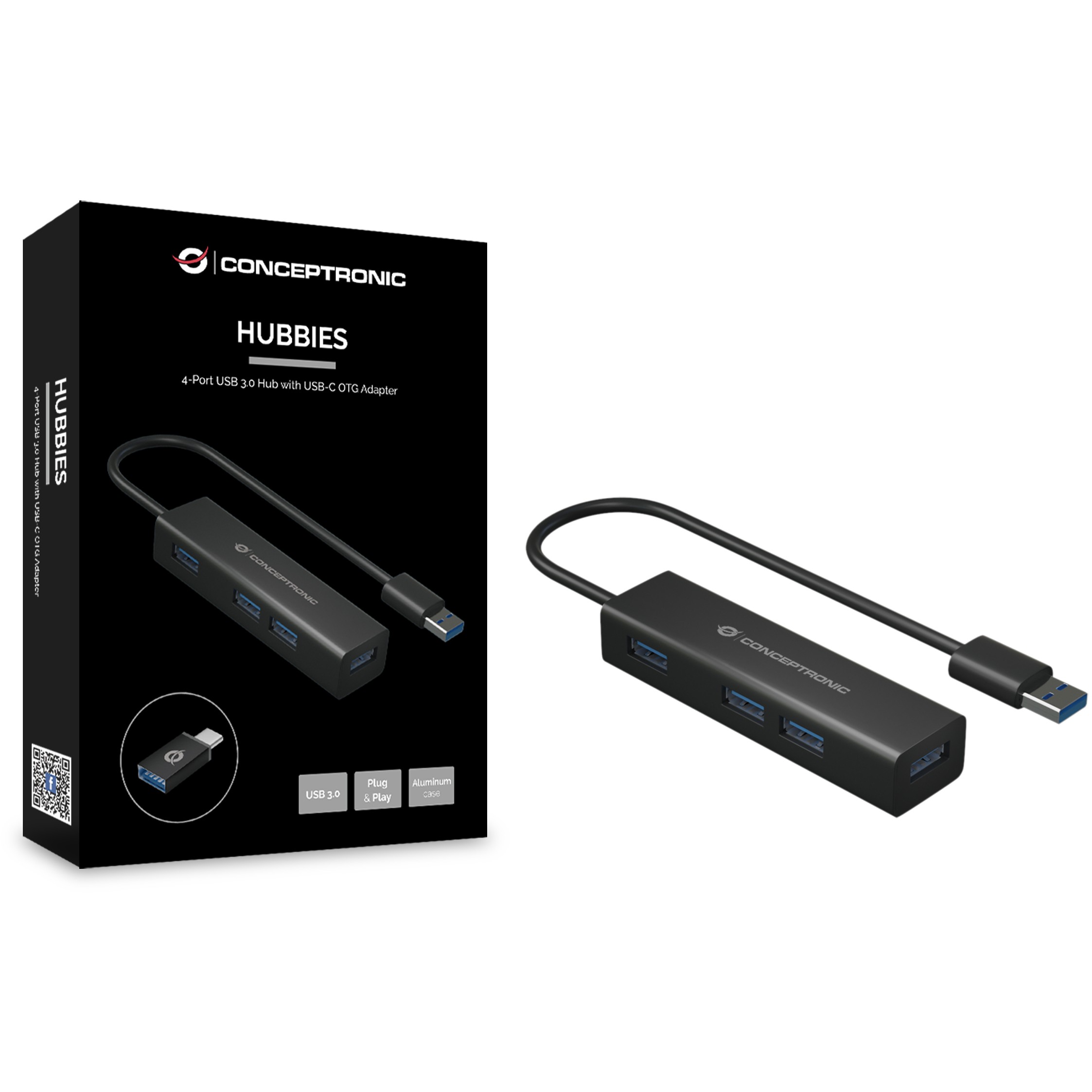 CONCEPTRONIC 4-Port Hub USB-A3.0/-C Adap.->4xA3.0 o.Netz. sw