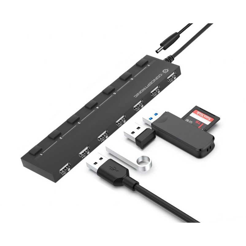 CONCEPTRONIC 7-Port Hub USB-A2.0->7xA2.0/DC o.Netz. sw