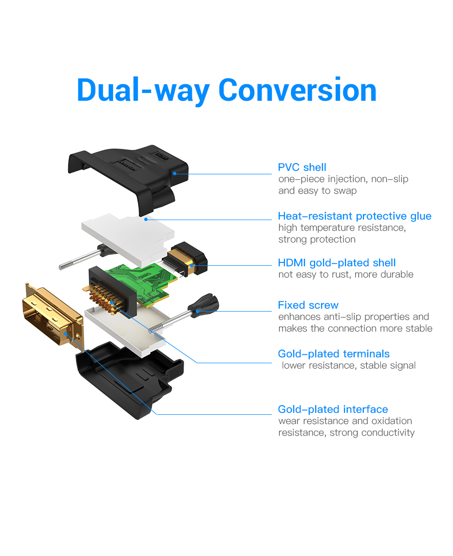 - 1080P HD Visual Effect: Supporting resolution up to 1920x1080, the Vention DVI to HDMI Adapter guarantees an impressive 1080P HD visual effect. This capability ensures rich, detailed, and sharp visuals, perfect for professional presentations, gaming, and high-definition video streaming.