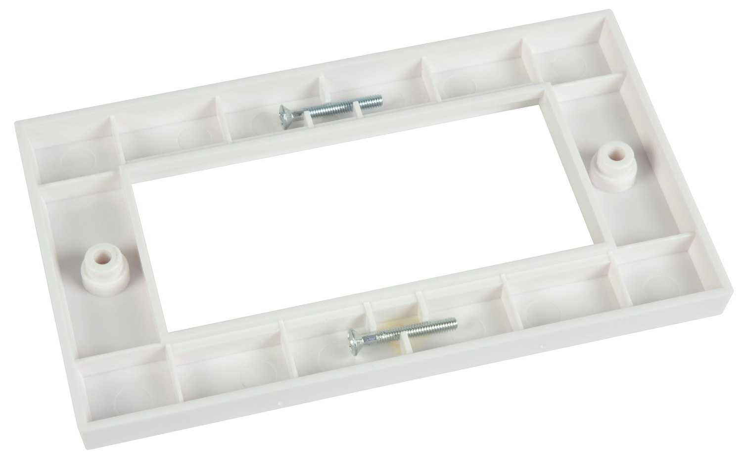 Available from 1 to 3 daysA double gang wall plate frame that can be loaded with any combination of 4 wall plate modules. Simply snap the modules in place for a quick and neat termination of AV or networking connections. Suitable for domestic, commercial or educational applications.