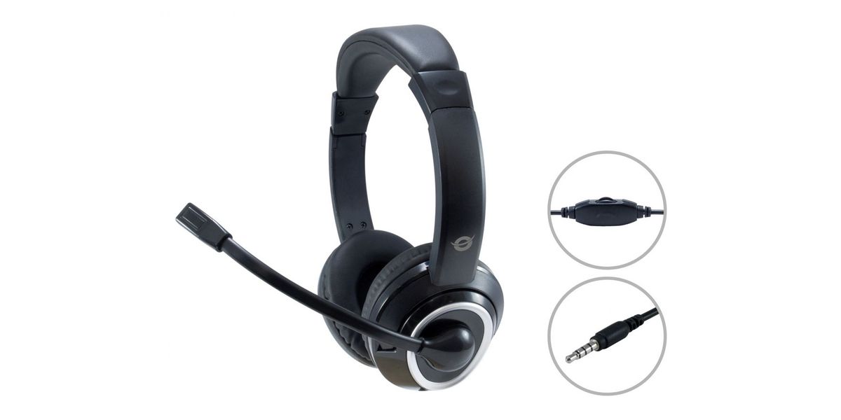 CONCEPTRONIC Headset Stereo AUX/Mikro/Bedien. 2.00m sw