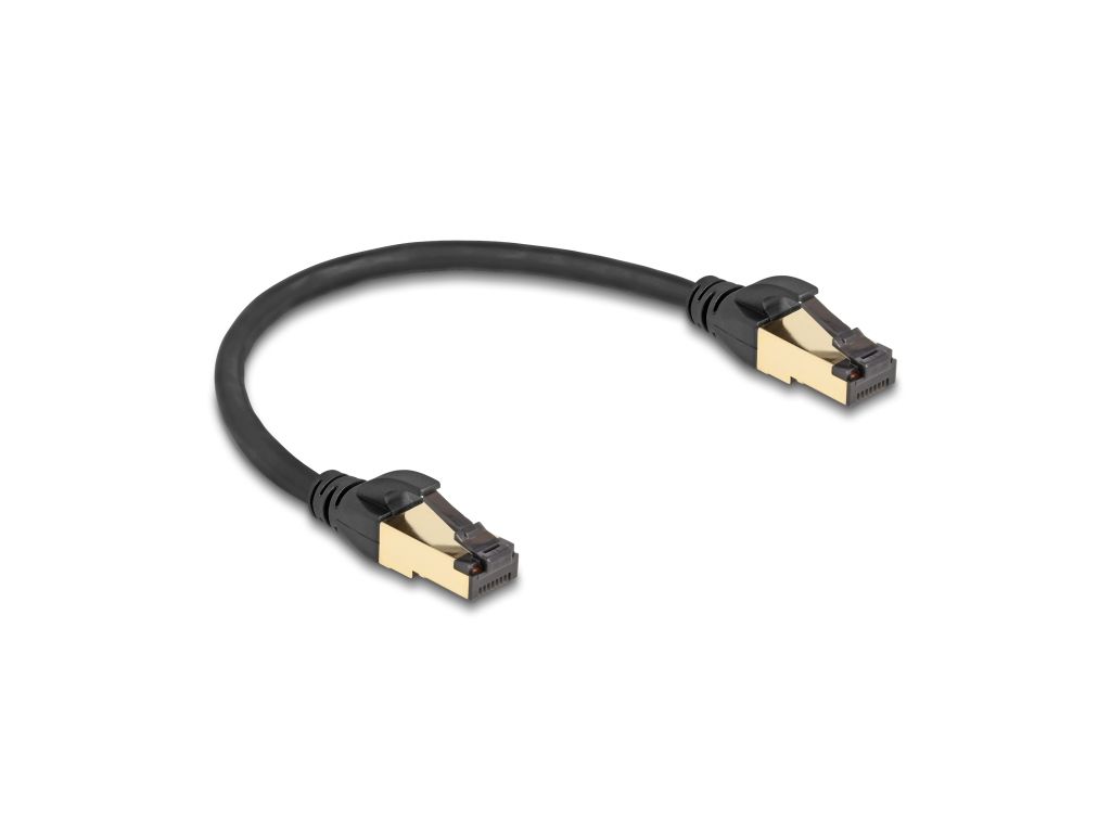 Delock , Network cable , RJ-45 (M) to RJ-45 (M) , 30 cm , 6 mm , S/FTP , CAT 6a , snagless, UV protection , black
