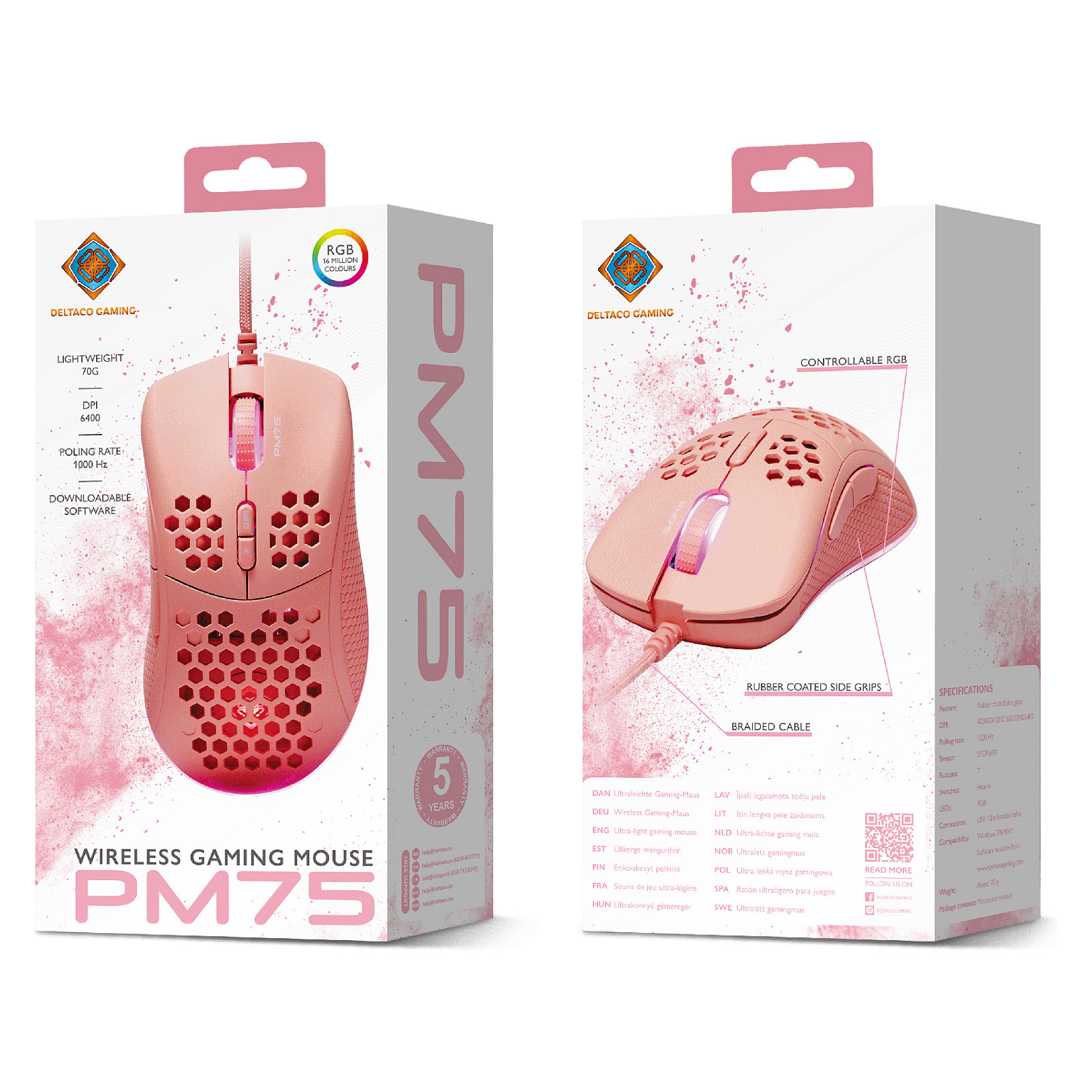 Deltaco Gaming Maus USB. RGB pink