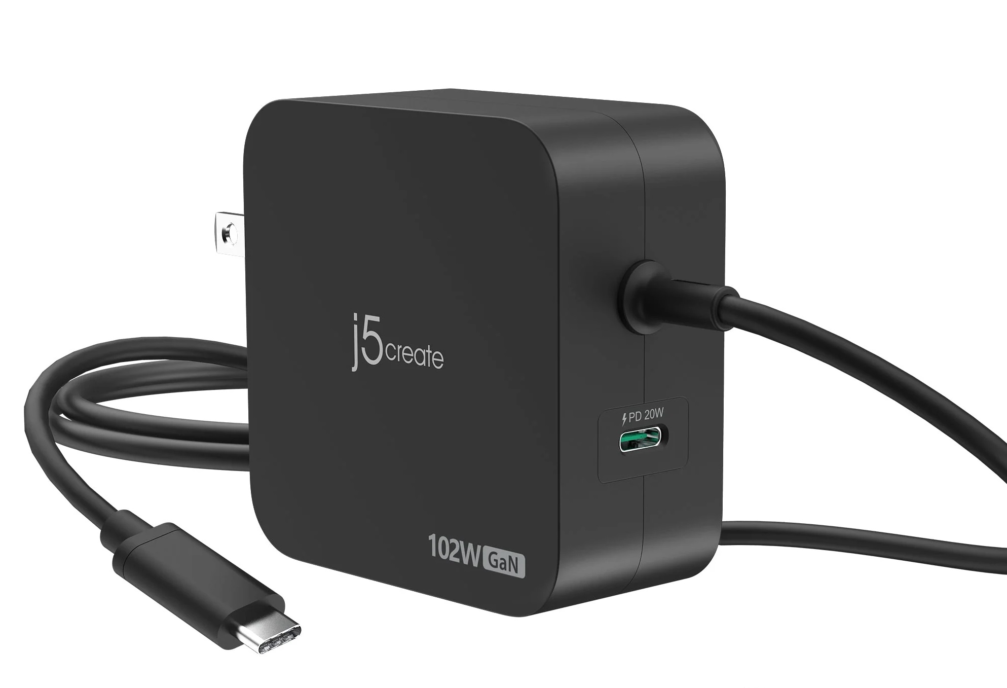 j5create Charger Wall Travel 102W GaN 2xUSB-C + USB-C Cable JUP25102V