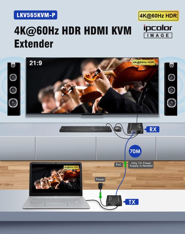 Lenkeng KVM HDMI Extender over Ethernet 4K60Hz 70m Loop IR LKV565KVM