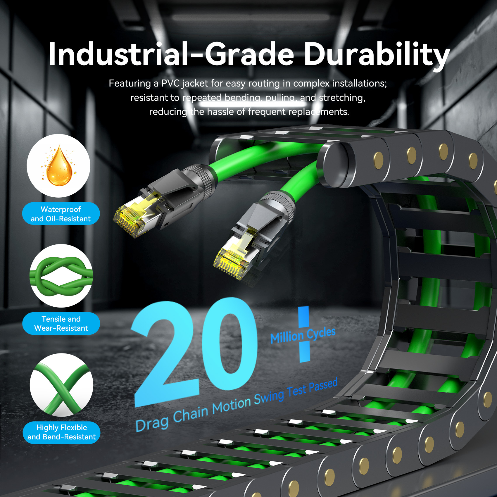 - Jacket Material: High-flexibility, oil-resistant industrial PVC/PUR