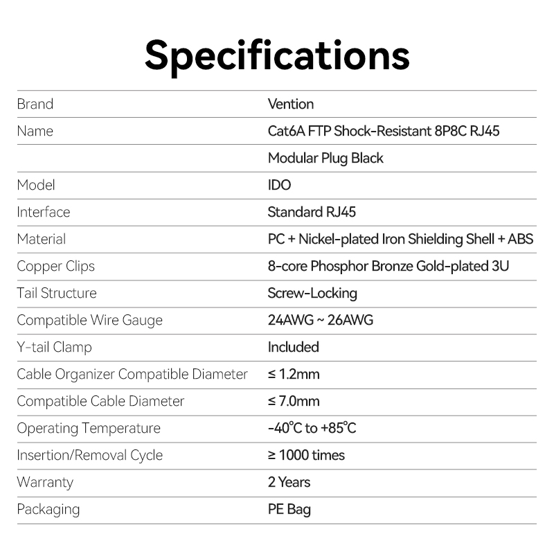 Vention NETWORK Connectors CAT6A FTP Shock-Resistant Modular Plug IDOB0-10 (10-Pack)