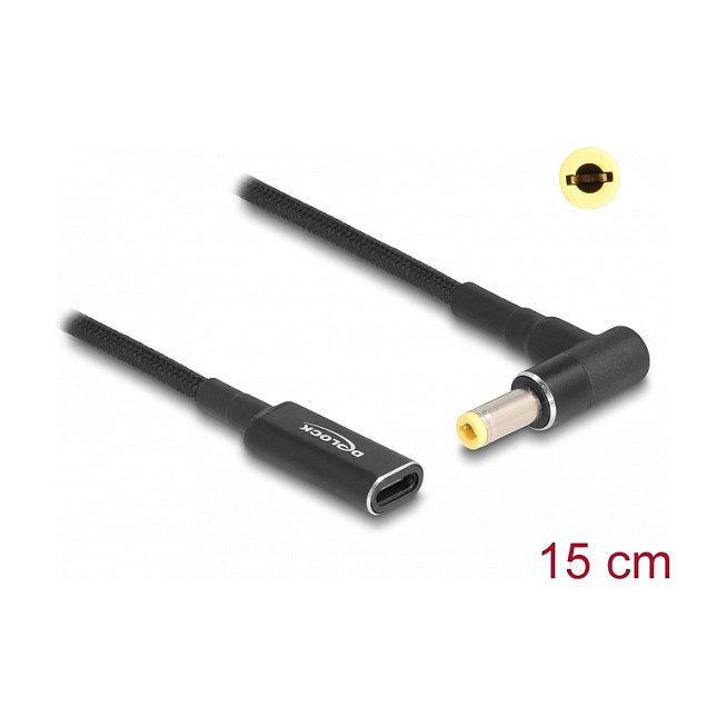 Delock Adapterkabel für Notebook Ladekabel USB Type-C™ Buchse zu 5.5 x 2.5 mm Stecker 90° gewinkelt 15 cm