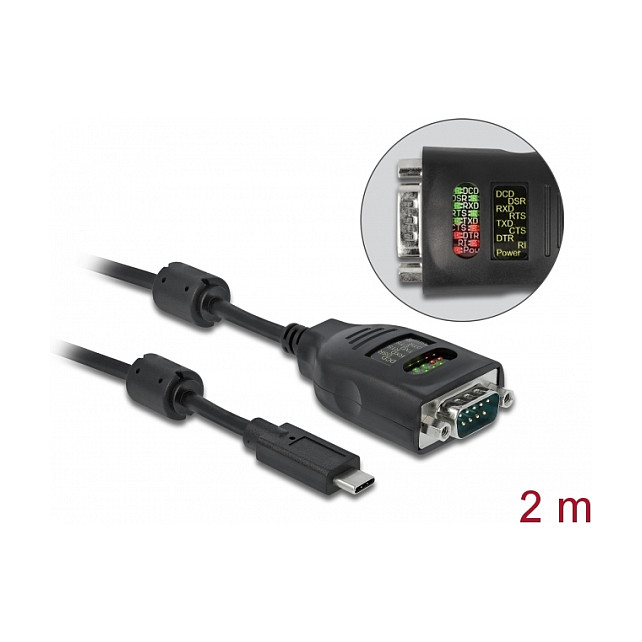 Delock USB Type-C™ zu Seriell DB9 Adapter mit 9 LED RS-232 Tester