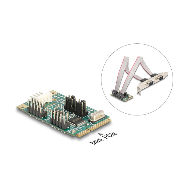 Mini PCIe I/O PCIe full size 2 x Seriell RS-232 mit Spannungsversorgung 5 V / 12 V