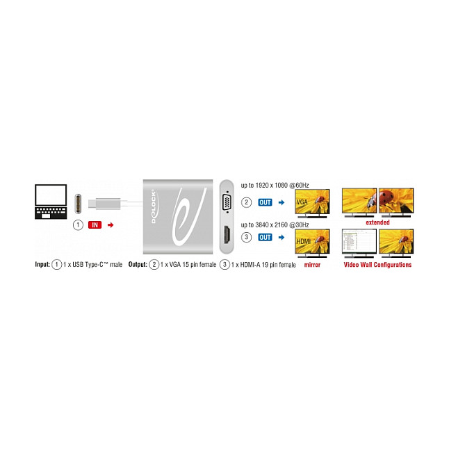 Delock USB Type-C™ Splitter (DP Alt Mode) > 1 x HDMI + 1 x VGA out