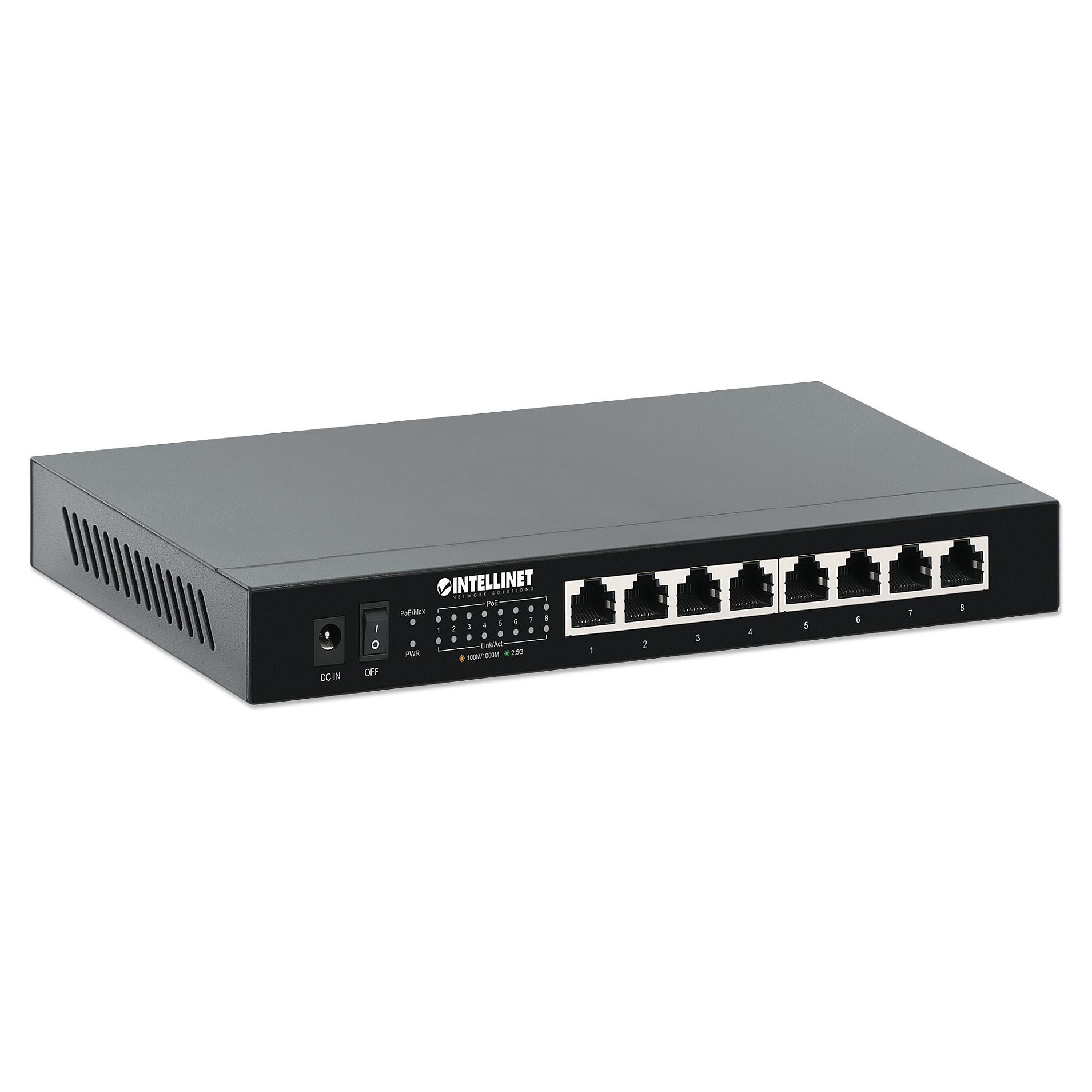 INTELLINET 8-Port 2.5G Ethernet PoE+ Switch 8x 10/100/1000/2500 Mbit/s PSE PoE+ Ports 100W PoE-Leistungsbudget optionale Wandmontage