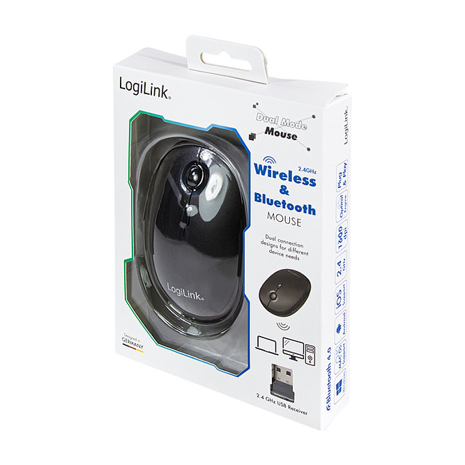 Logilink Maus Funk & Bluetooth.2.4GHz.800/1200/1600dpi.schw.